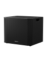Caisson en contreplaqué, peinture noire, pieds en caoutchouc, grille en métal avec mousse, double poignée